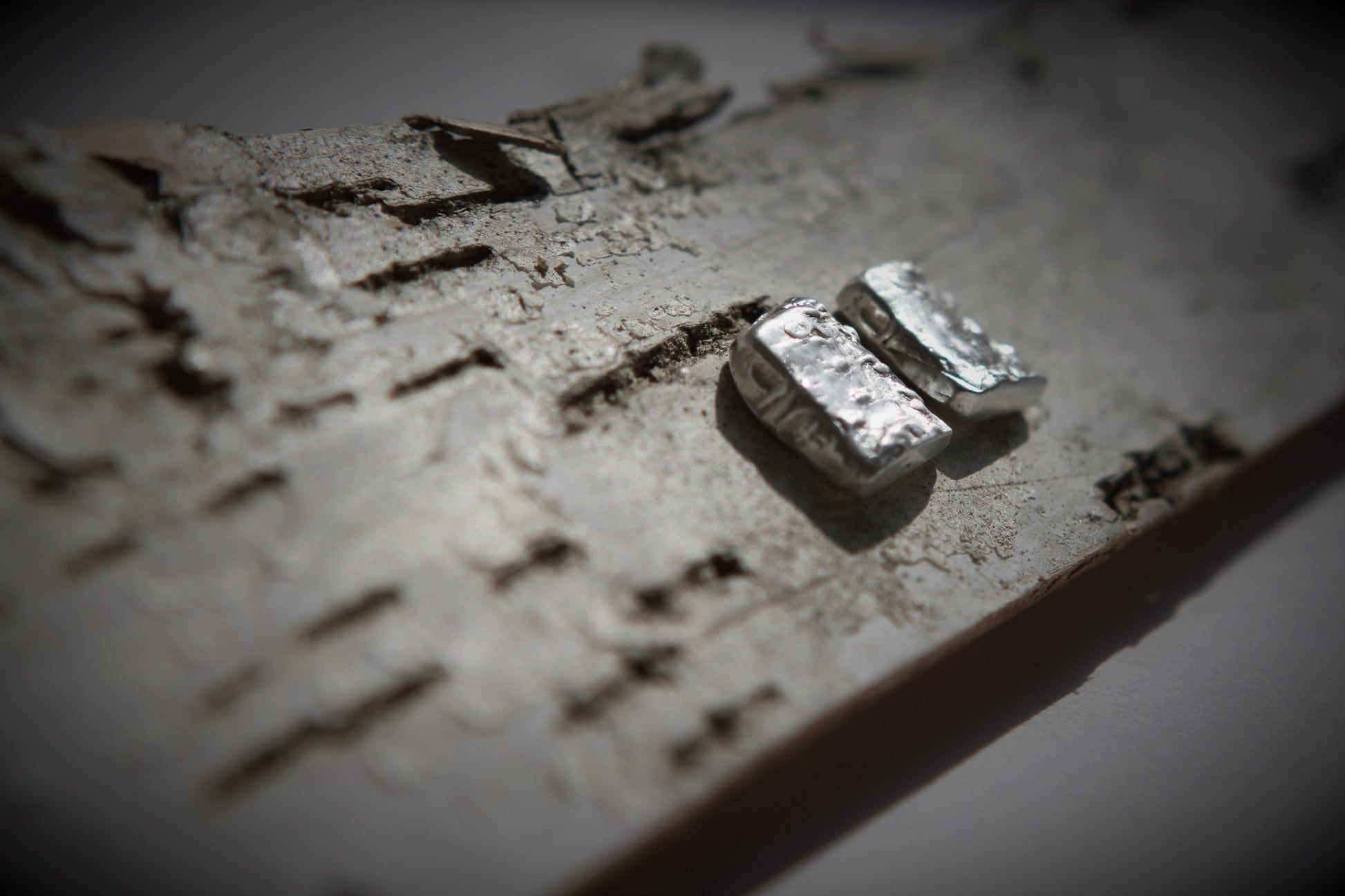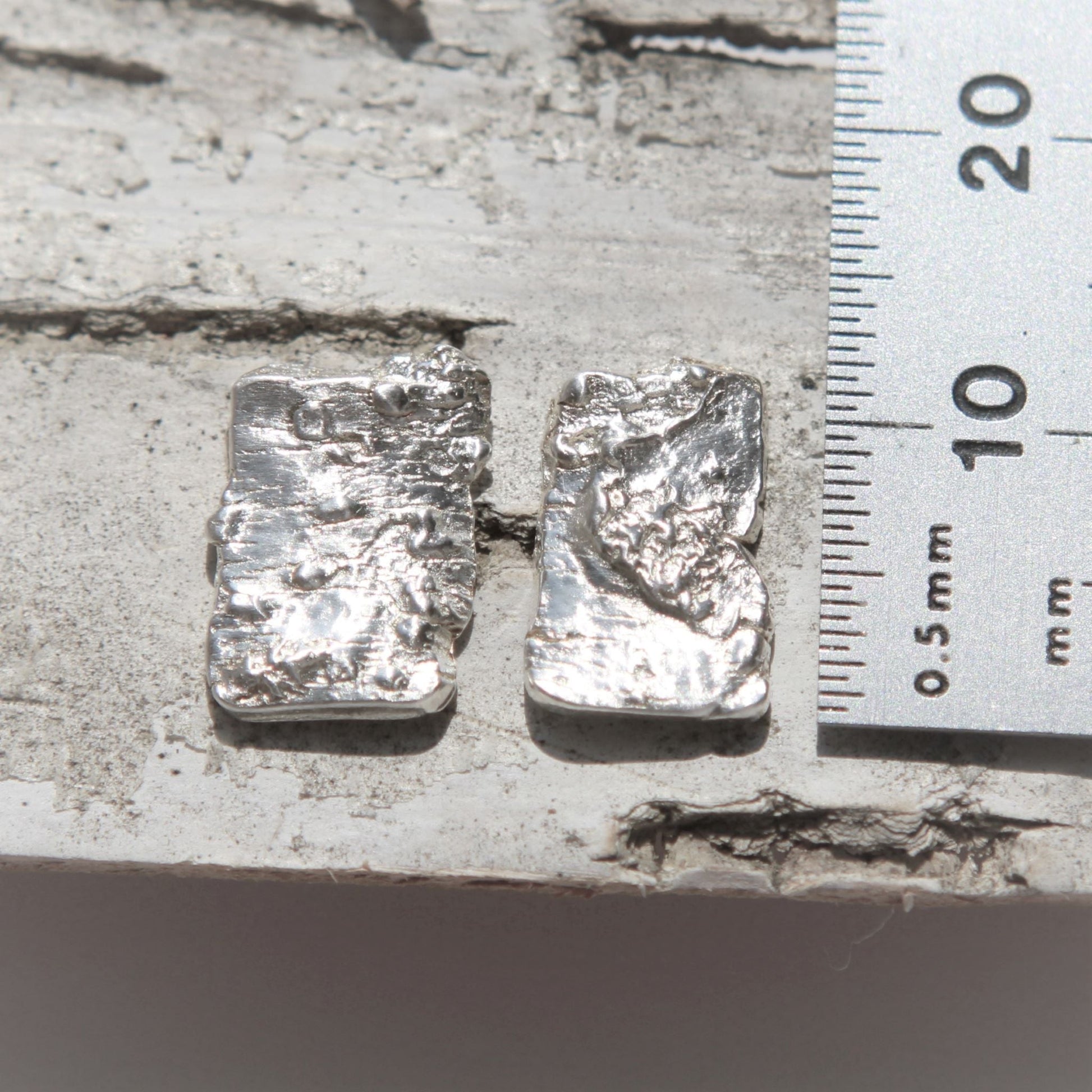 Rectangles of pure silver birch bark with sterling silver posts and backs.