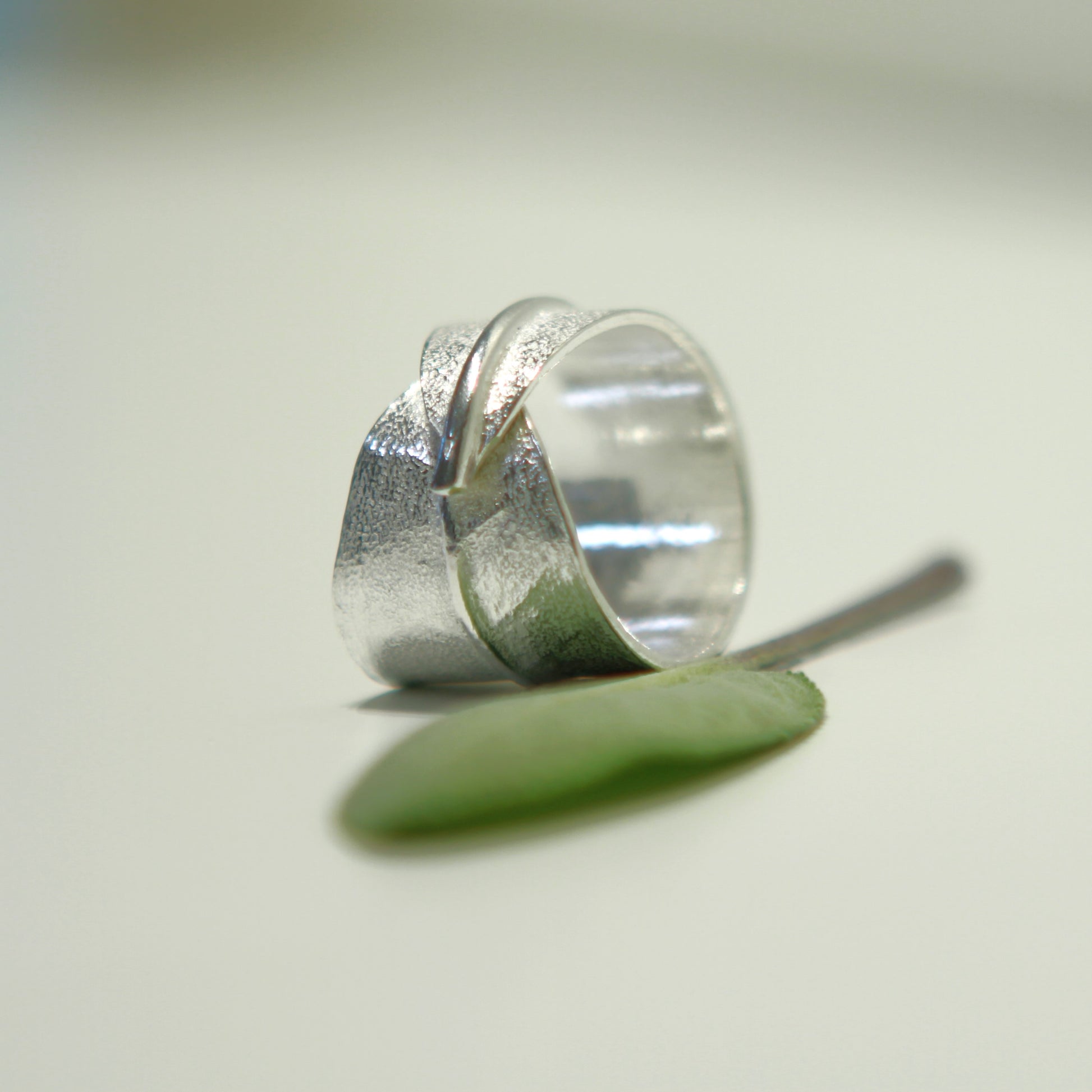 This pure silver ring is hand formed by impressing an actual sage leaf into pure silver.